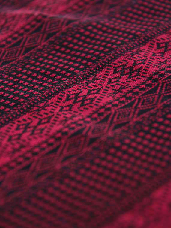 With what can only be described as a gentle, fine, Persian carpet pattern, Polycotton Interlock Jacquard has a lot of colours in it - red, black, bit of orange, pale green, hint of yellow and a little bit of blue. It is very cleverly woven, made in a mix of 59% cotton, 49% polyester, with a lovely soft hand feel to it. It is most suitable for making jackets but it wouldn't be surprising if it didn’t get used for some kind of light furnishing in a nice light room; curtains for instance.